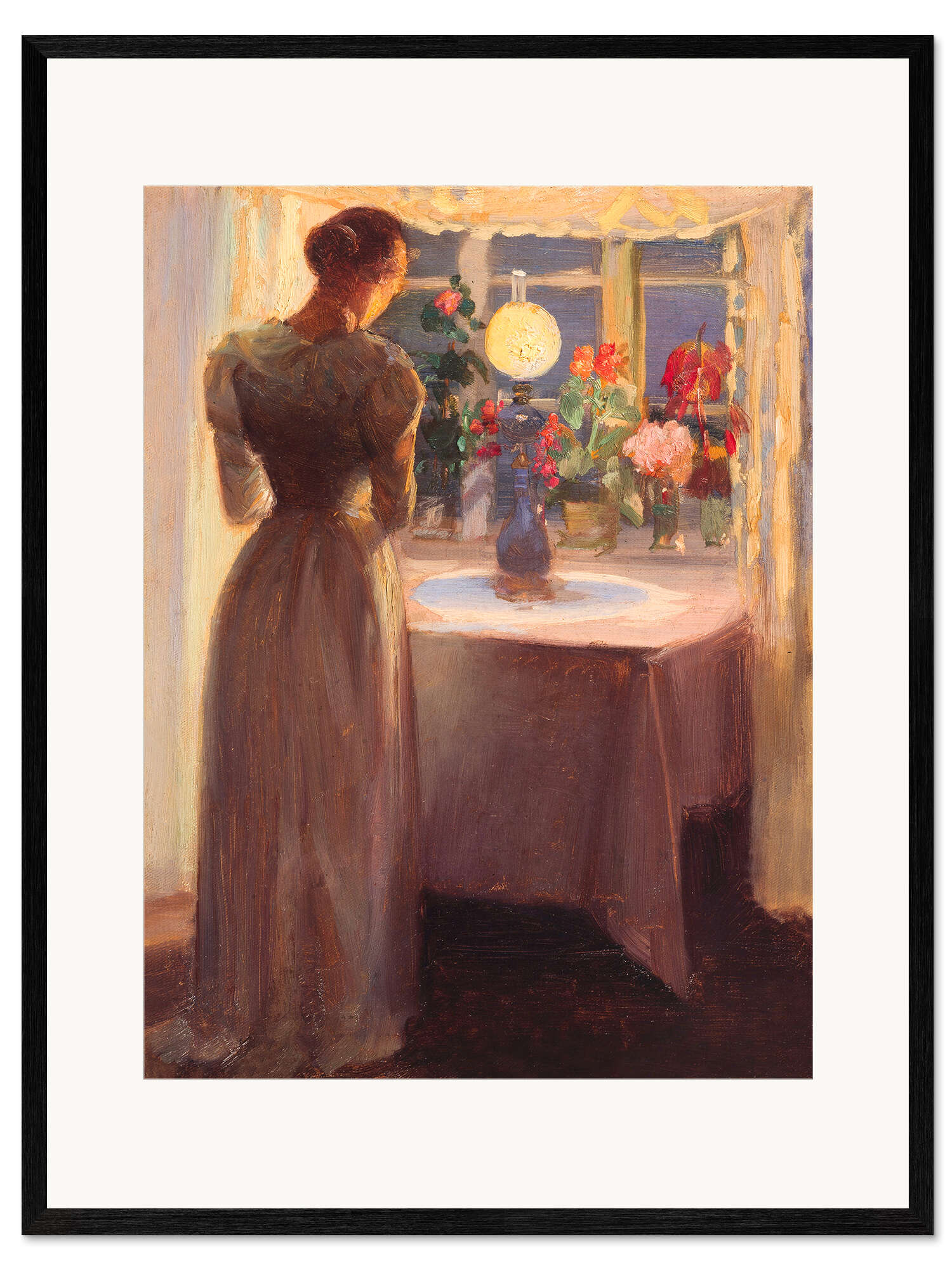 Gerahmter Kunstdruck Junges Mädchen vor einer brennenden Lampe