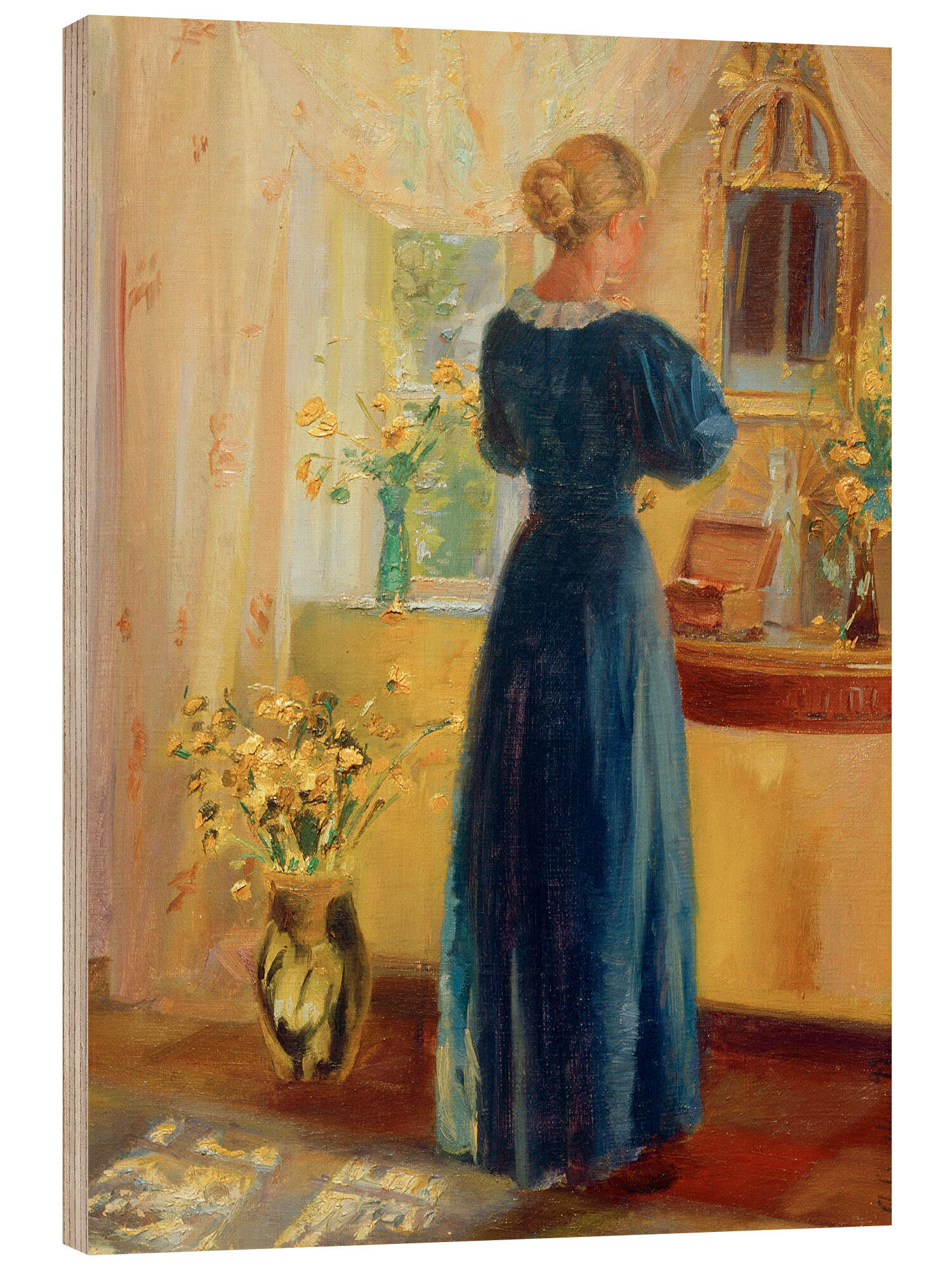 Holzbild Frau vor dem Spiegel