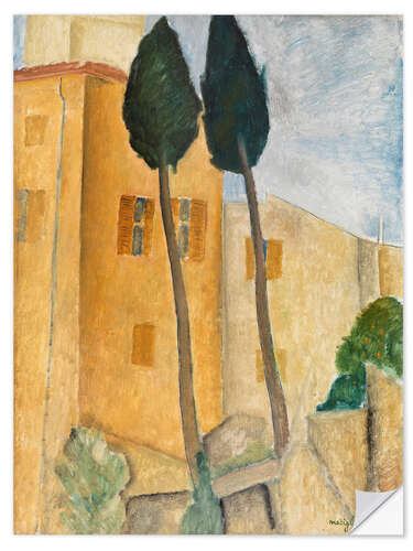 Posterlounge   Wandbilder   Malerei   Expressionismus   Amedeo Modigliani   Wandsticker Zypressen und Häuser in Cagnes