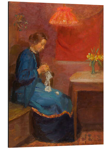 Alubild Frau mit ihrer Handarbeit