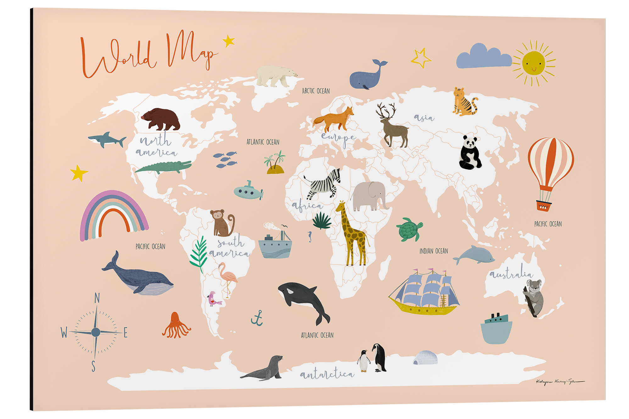 Weltkarte mit Tieren (Englisch)