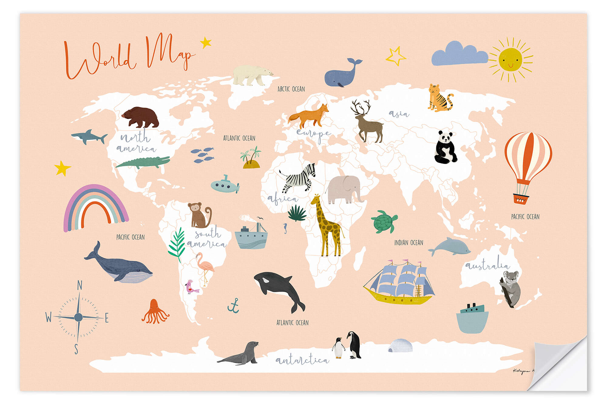 Weltkarte mit Tieren (Englisch)