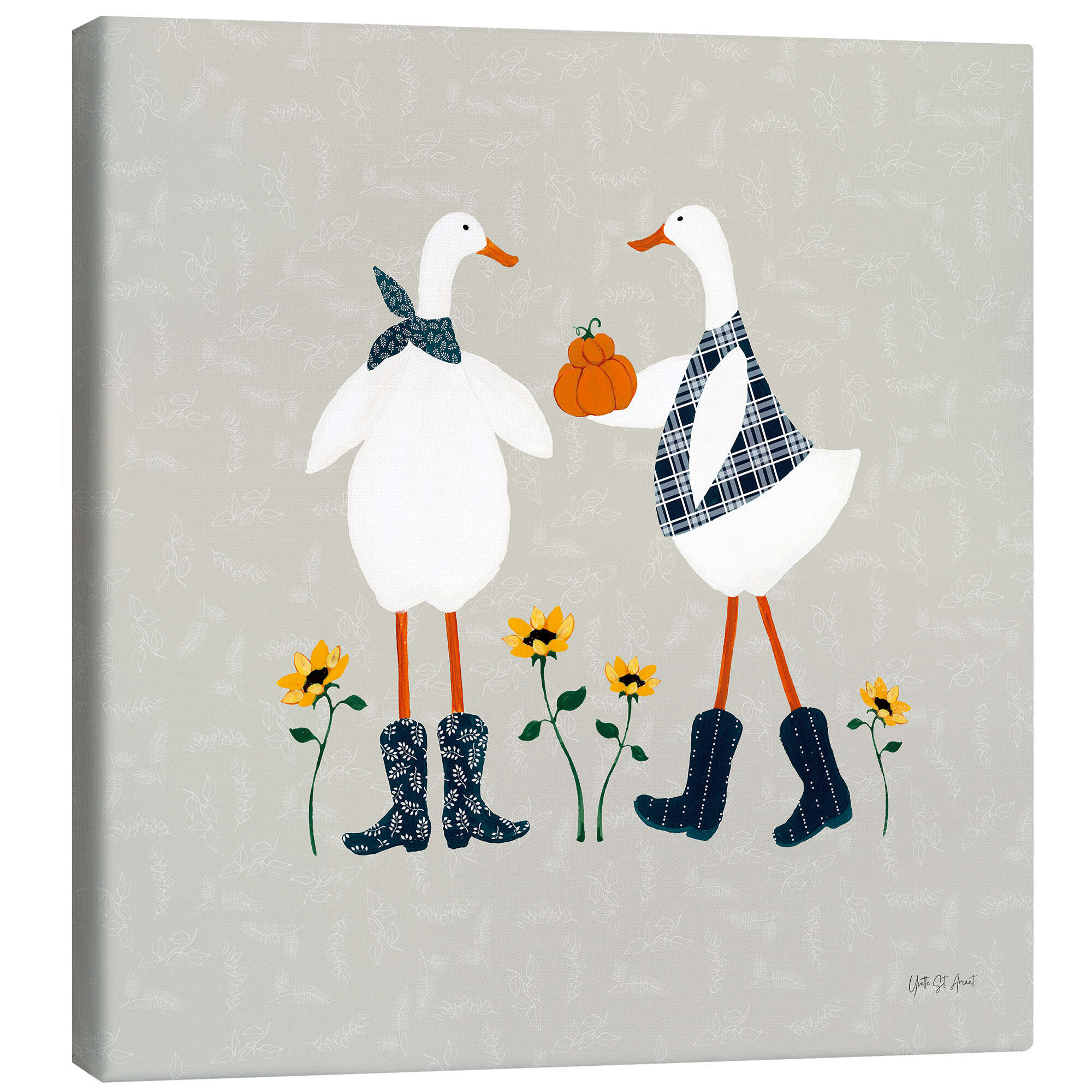 Posterlounge   Wandbilder   Illustration   Yvette St. Amant   Leinwandbild Enten im Kürbisbeet