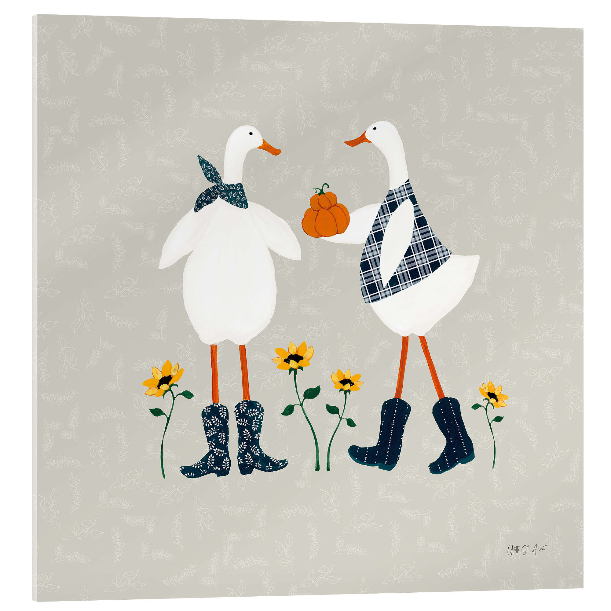 Posterlounge   Wandbilder   Illustration   Yvette St. Amant   Acrylglasbild Enten im Kürbisbeet