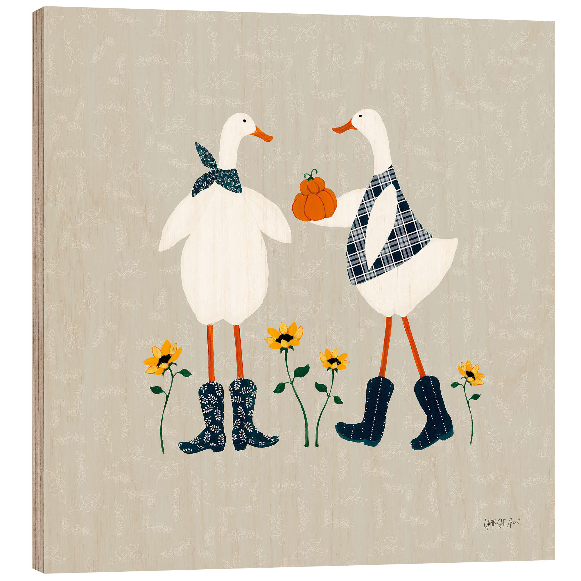 Posterlounge   Wandbilder   Illustration   Yvette St. Amant   Holzbild Enten im Kürbisbeet