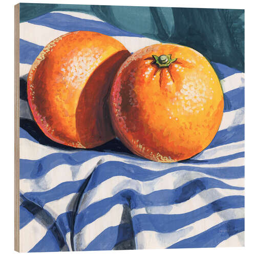 Holzbild Orangen auf gestreiftem Tuch