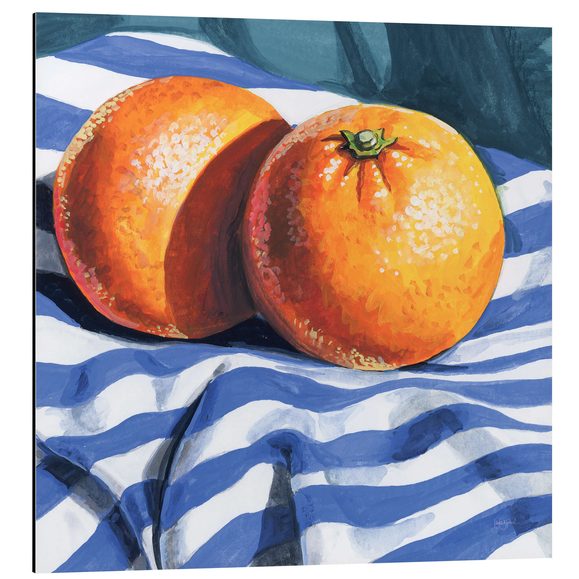 Magnettafel Orangen auf gestreiftem Tuch