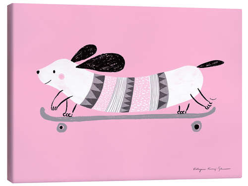 Leinwandbild Rosa Hund beim Skaten