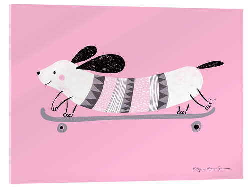 Acrylglasbild Rosa Hund beim Skaten