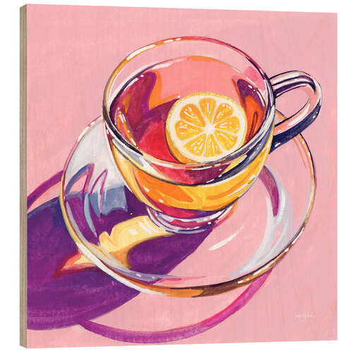 Holzbild Tasse Tee mit Zitrone