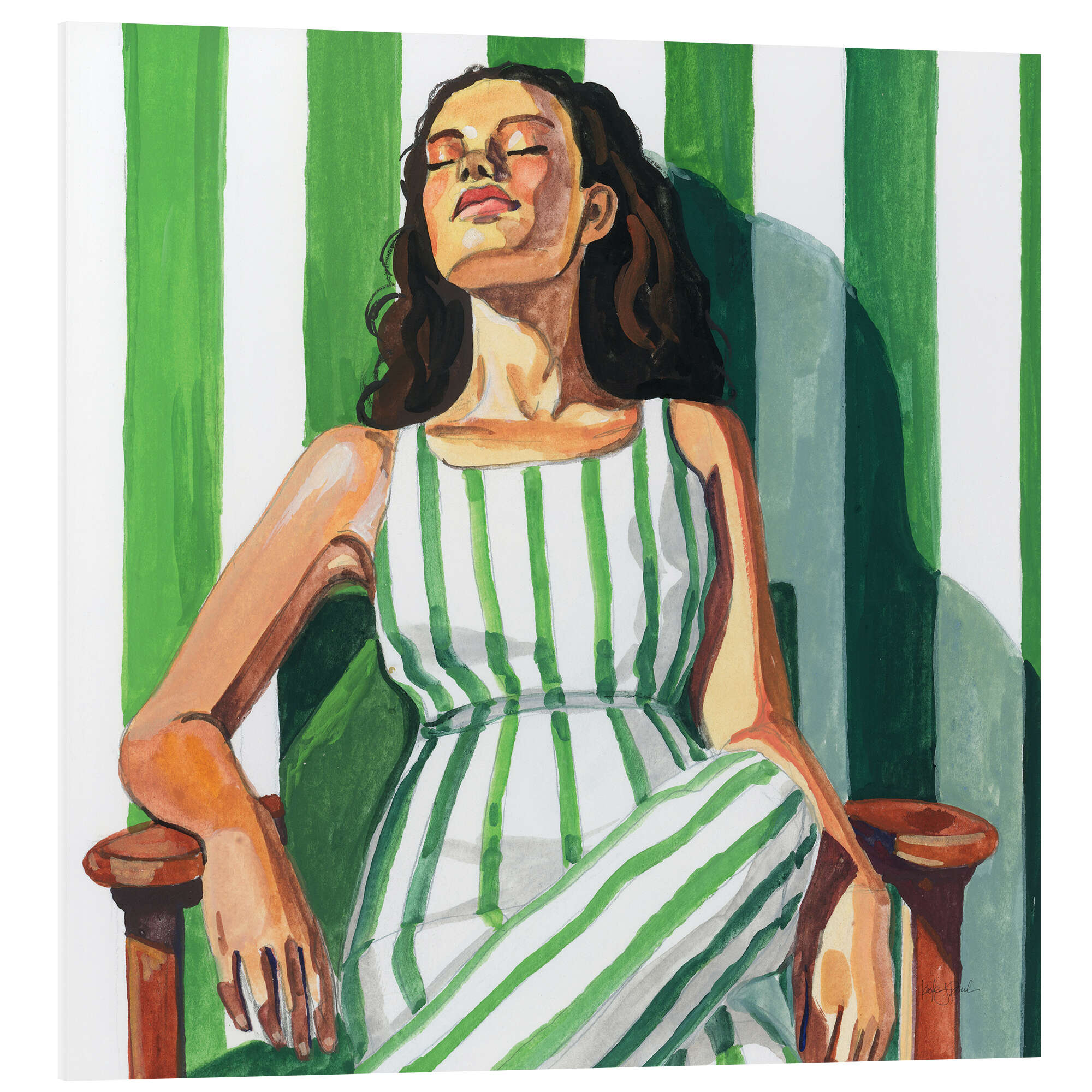 Mrs. Hone in einem gestreiften Kleid