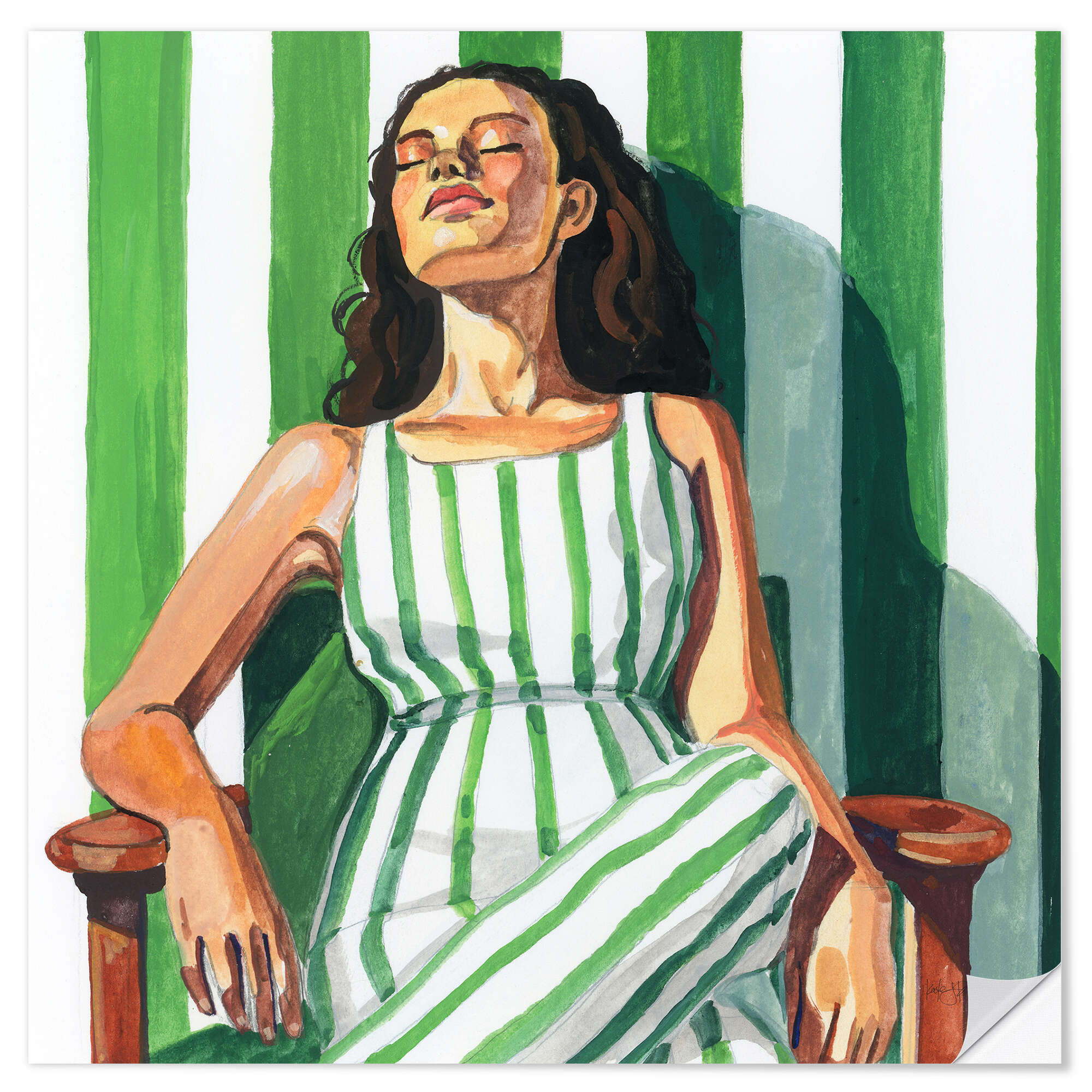 Mrs. Hone in einem gestreiften Kleid