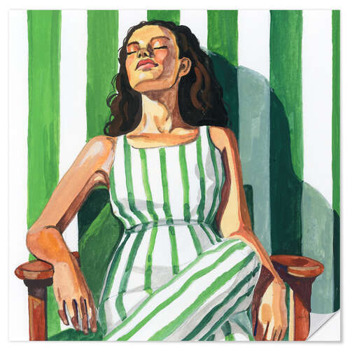 Frau in einem gestreiften Kleid