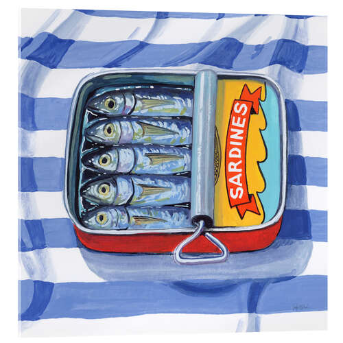 Acrylglasbild Sardinen auf gestreiftem Tuch