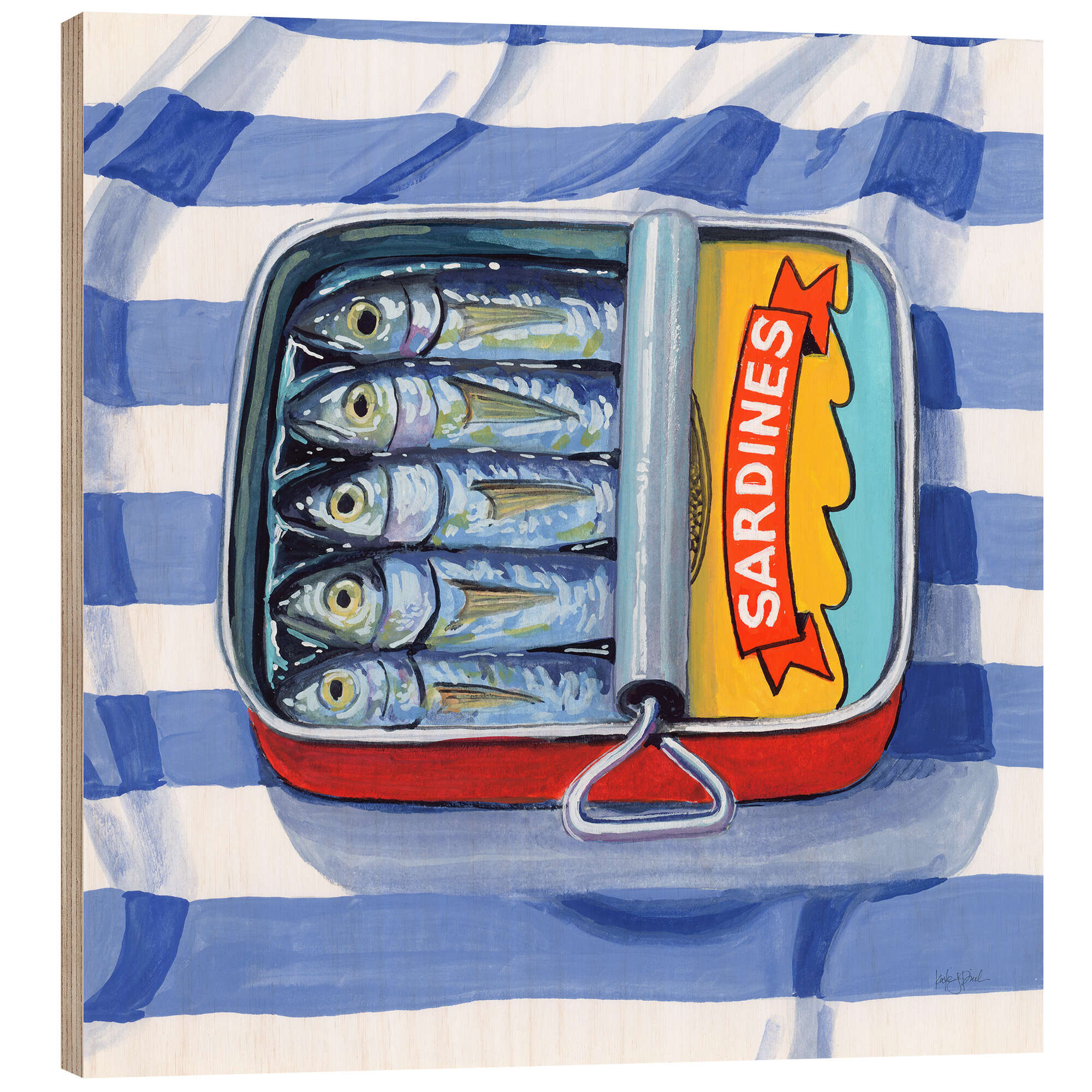 Posterlounge   Wandbilder   Küche   Kate Jarvick Birch   Holzbild Sardinen auf gestreiftem Tuch