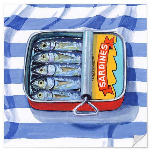 Posterlounge   Wandbilder   Küche   Kate Jarvick Birch   Wandsticker Sardinen auf gestreiftem Tuch