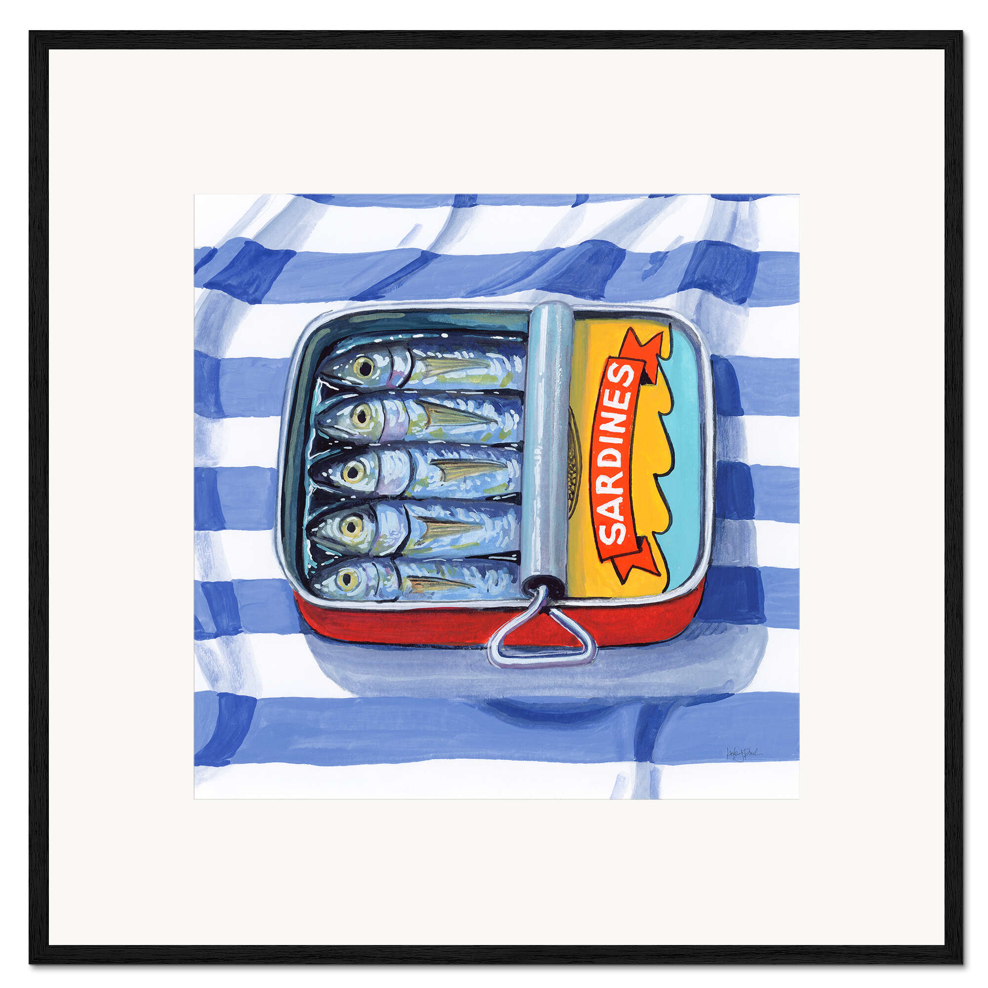 Posterlounge   Wandbilder   Küche   Kate Jarvick Birch   Gerahmter Kunstdruck Sardinen auf gestreiftem Tuch