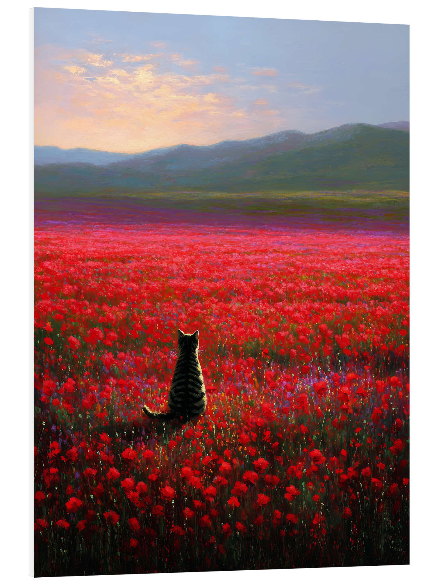 Hartschaumbild Getigerte Katze in Mohnblumenfeld