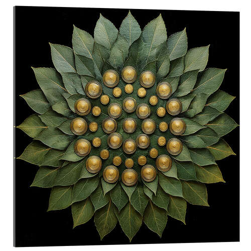 Acrylglasbild Mandala aus grünen Blättern