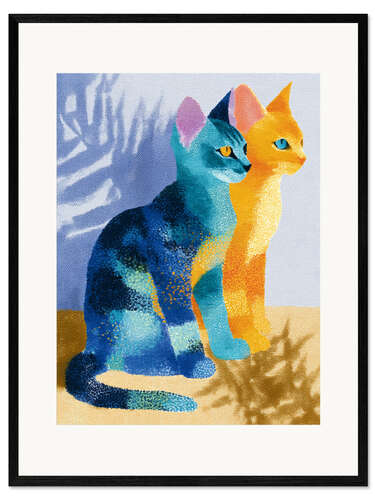 Gerahmter Kunstdruck Eine Katze in Orange und eine in Blau