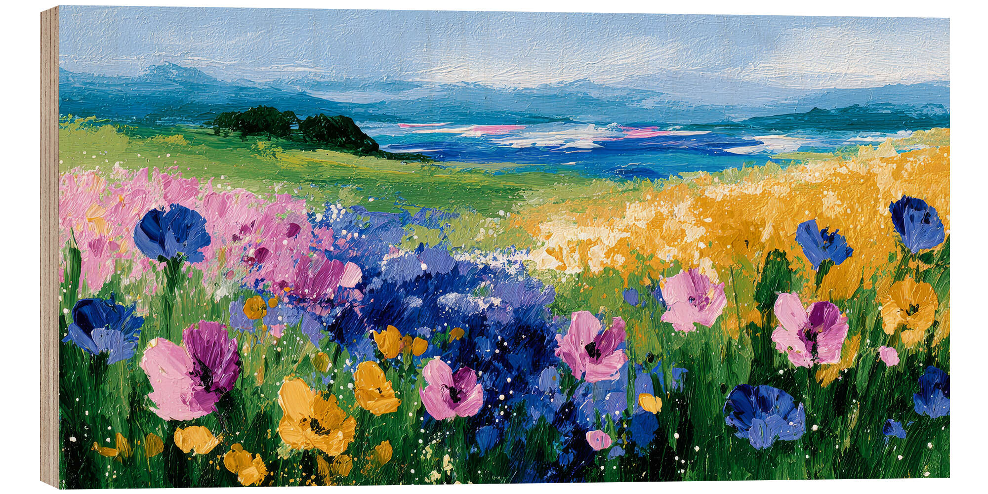 Posterlounge   Wandbilder   Blumen   DejaReve   Holzbild Landschaft mit bunten Feldblumen