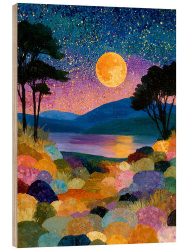 Posterlounge   Wandbilder   Modern   DejaReve   Holzbild Bunte Vollmondnacht