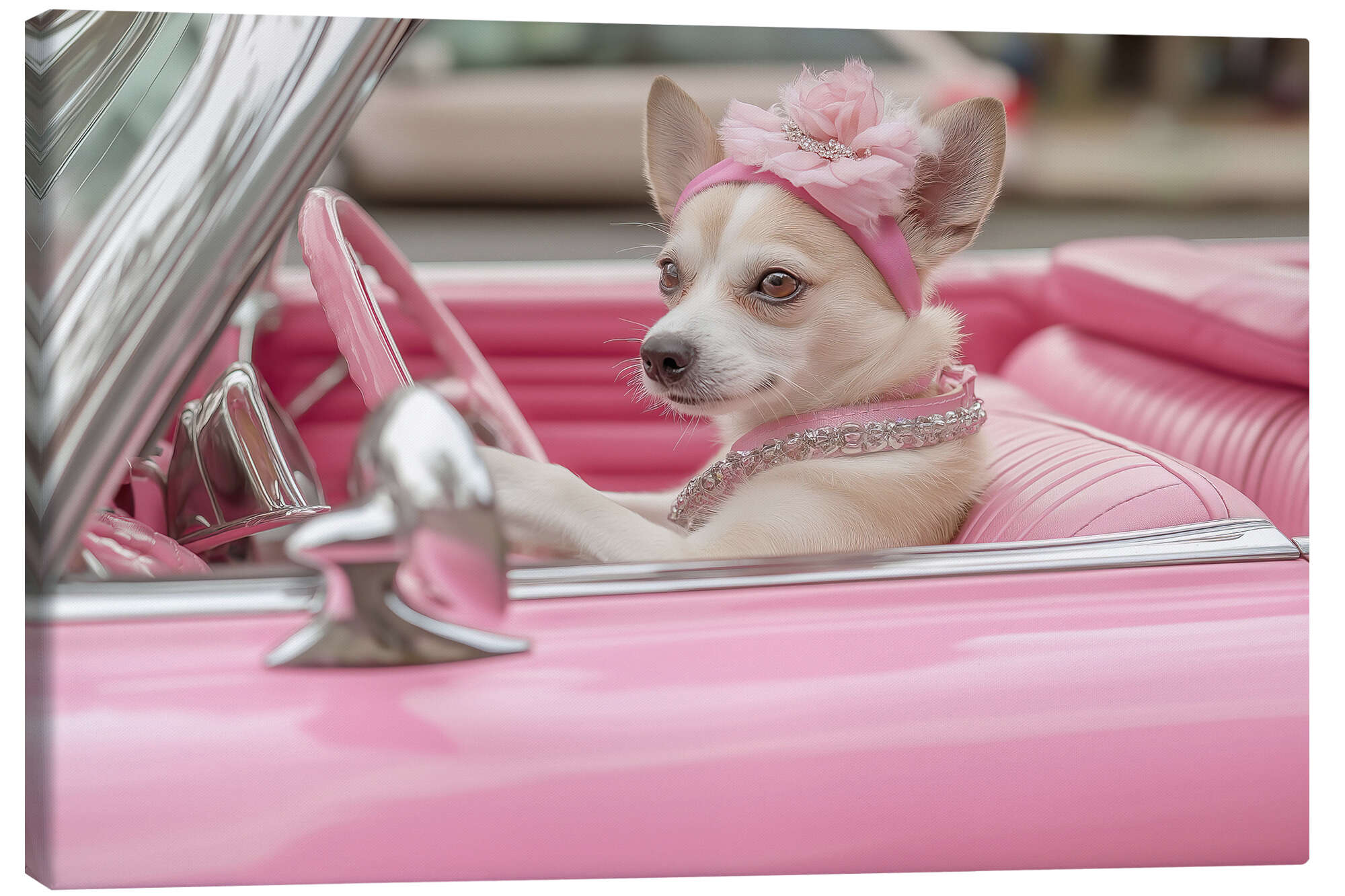 Posterlounge   Wandbilder   Fotografie   Jones & Shimlock   Leinwandbild Süßer Hund in Pink Cabrio