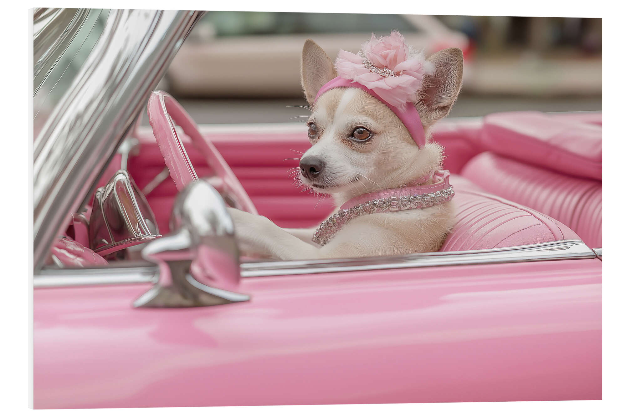 Posterlounge   Wandbilder   Fotografie   Jones & Shimlock   Hartschaumbild Süßer Hund in Pink Cabrio