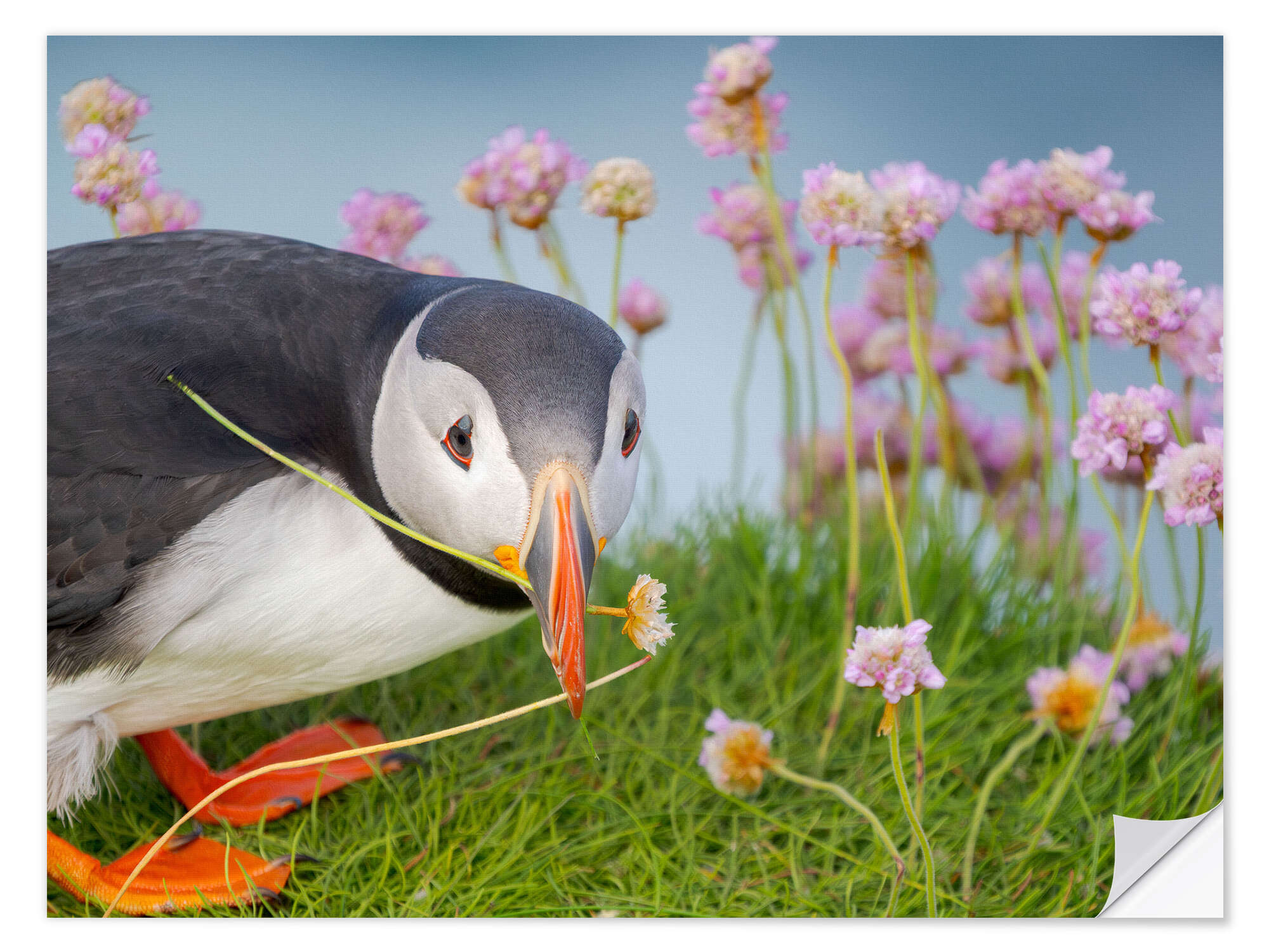 Wandsticker Blume im Schnabel, Atlantischer Papageientaucher