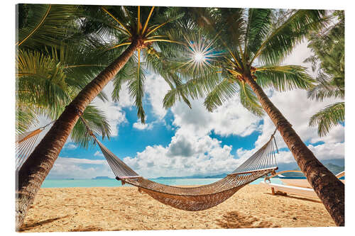 Acrylglasbild Hängematte zwischen zwei Palmen, Hawaii, Oahu