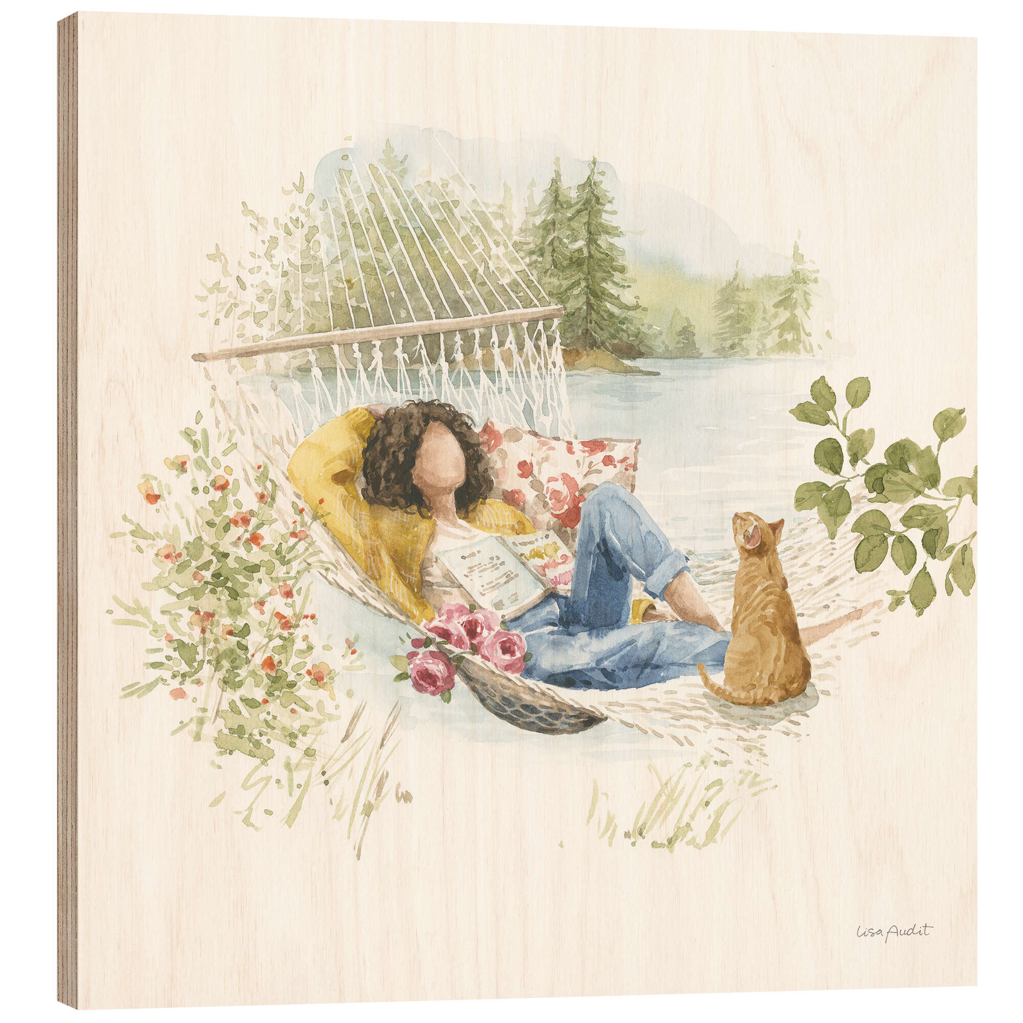 Posterlounge   Wandbilder   Illustration   Lisa Audit   Holzbild Urlaub in der Hängematte