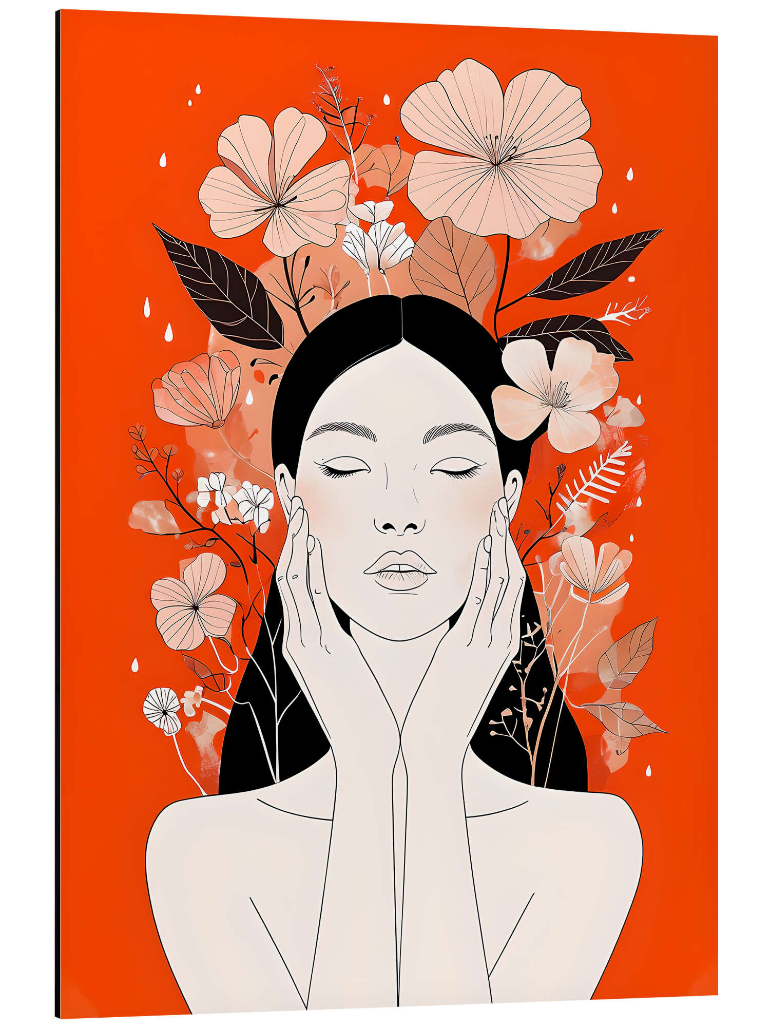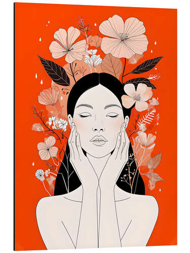 Alubild Frauenporträt auf orangefarbenem Hintergrund