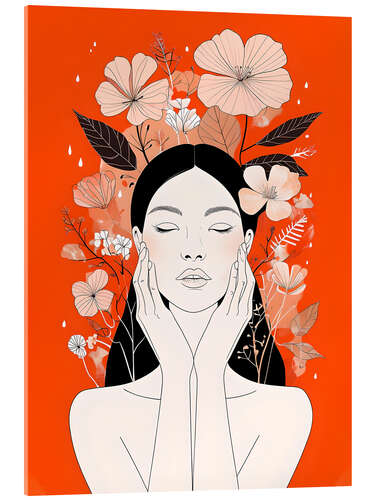 Acrylglasbild Frauenporträt auf orangefarbenem Hintergrund
