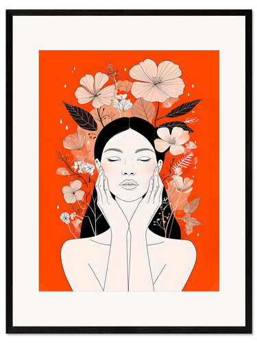 Posterlounge   Wandbilder   Digitale Kunst   nobelart   Gerahmter Kunstdruck Frauenporträt auf orangefarbenem Hintergrund
