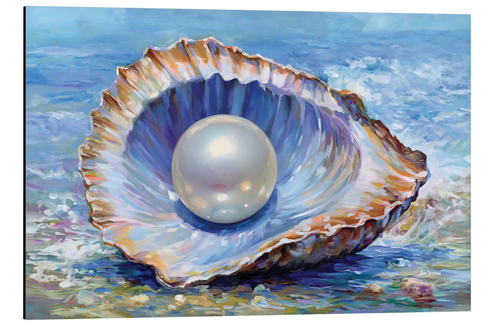 Posterlounge   Wandbilder   Blau   Leon Devenice   Alubild Perle in einer Austernschale