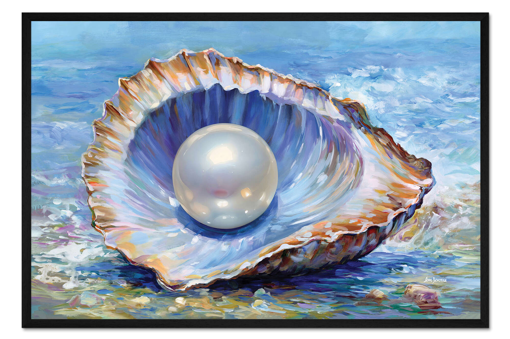 Posterlounge   Wandbilder   Blau   Leon Devenice   Gerahmter Kunstdruck Perle in einer Austernschale