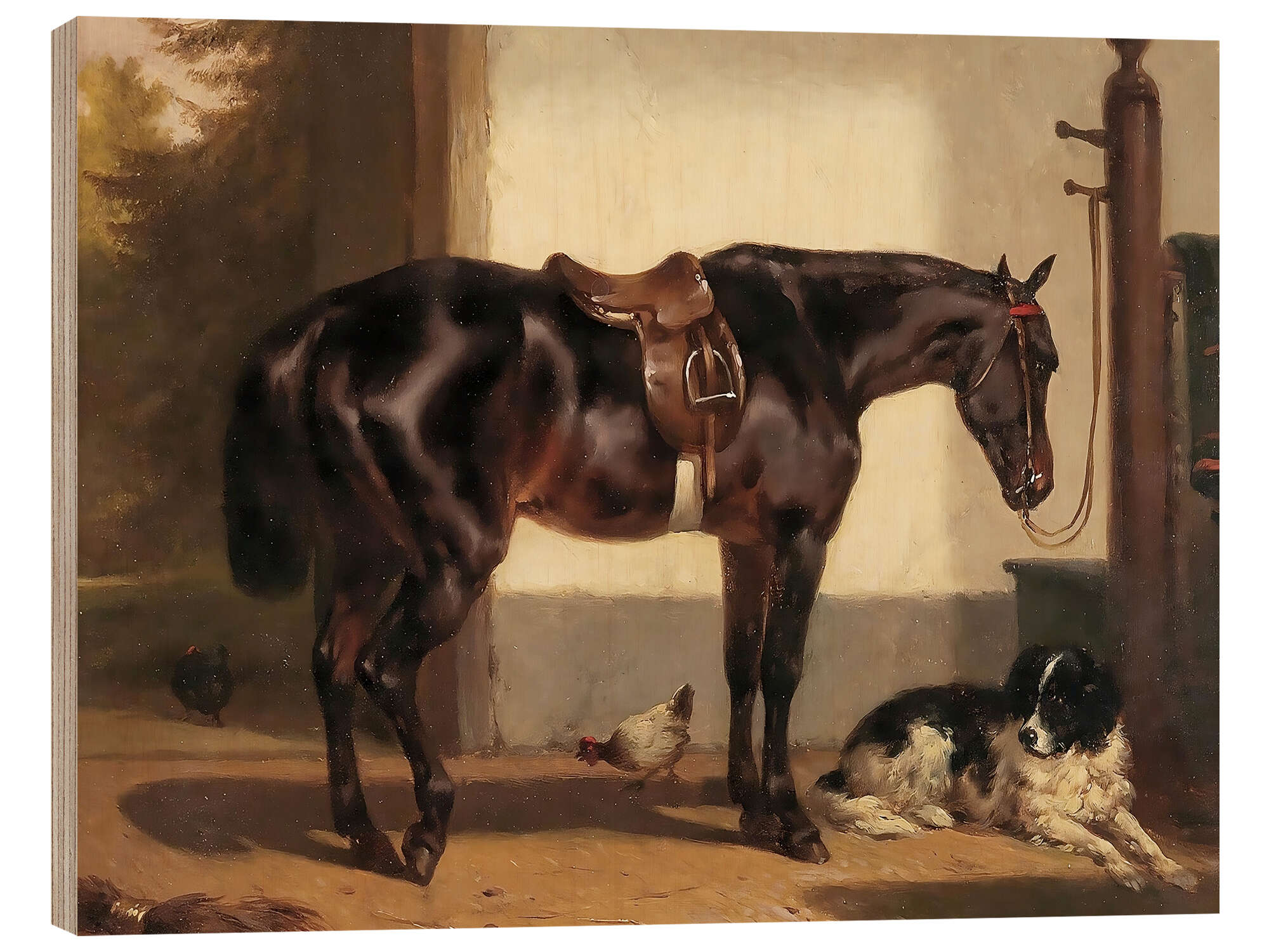 Holzbild Retro Pferd und Hund