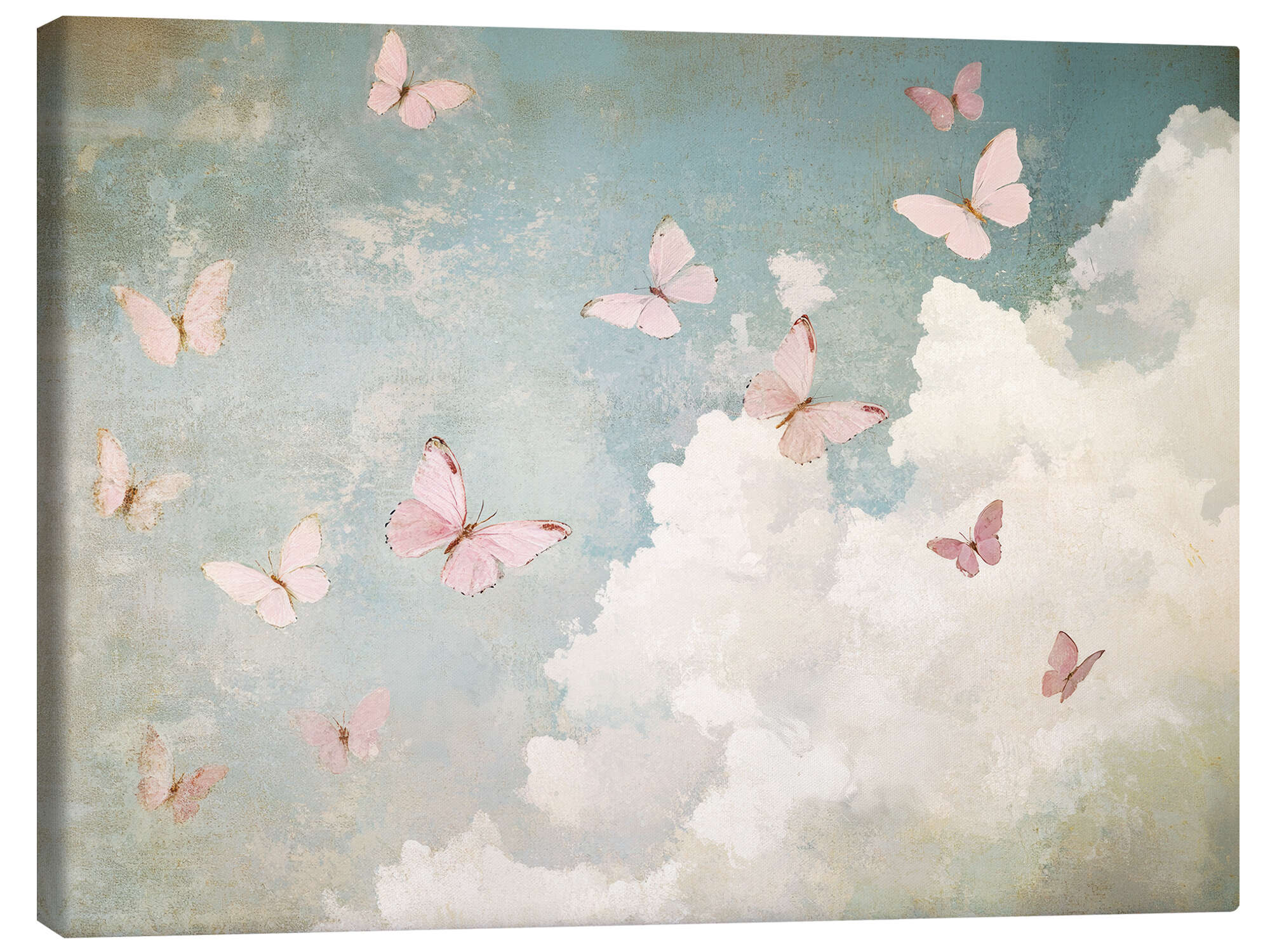 Leinwandbild Wunderliche Schmetterlinge und Wolken