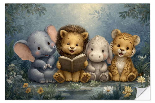 Wandsticker Waldfreunde teilen gemeinsam ein Märchenbuch
