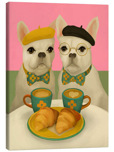 Leinwandbild Französische Bulldoggen beim Frühstück