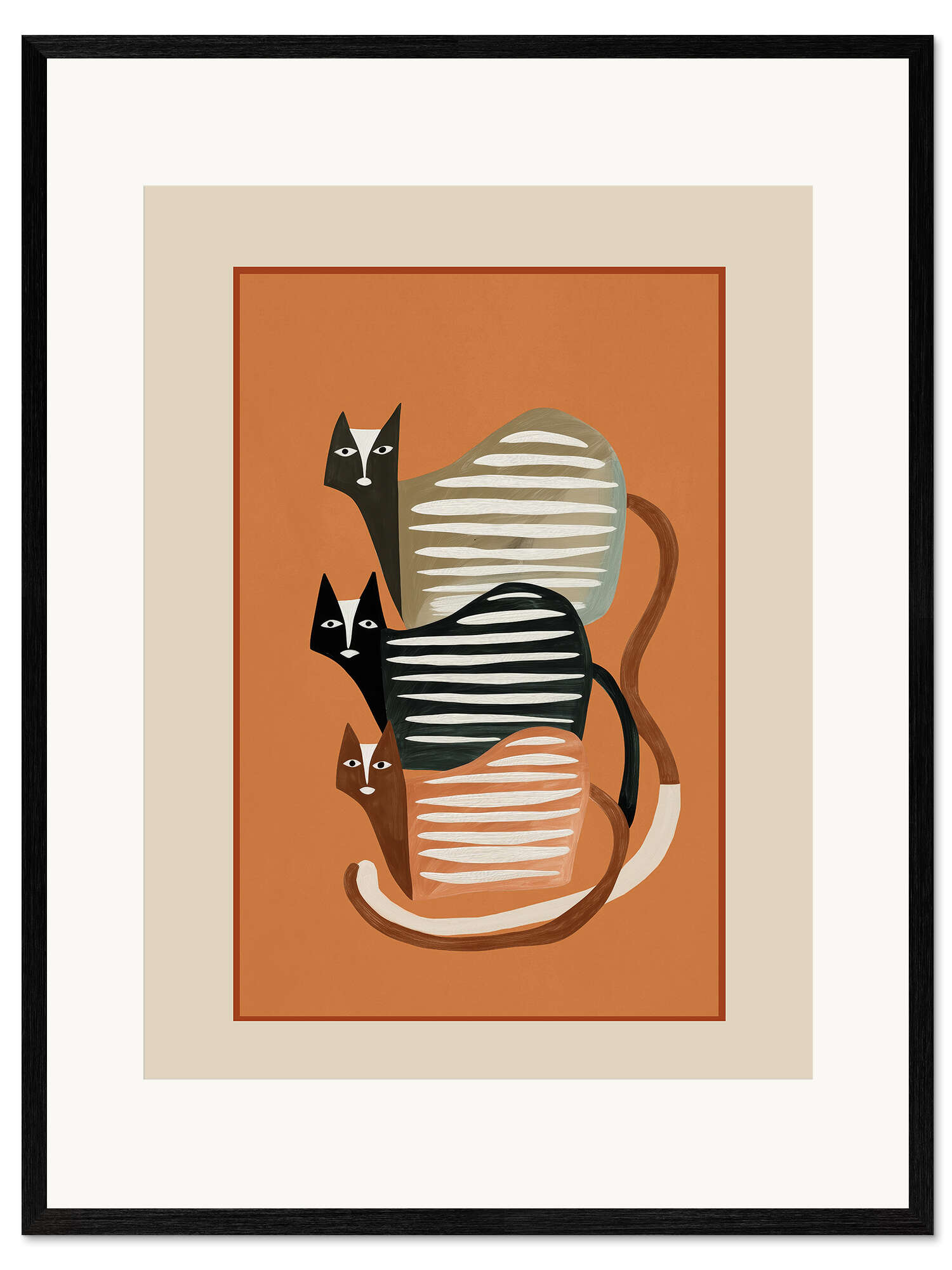 Gerahmter Kunstdruck Gestapelte abstrakte Katzen