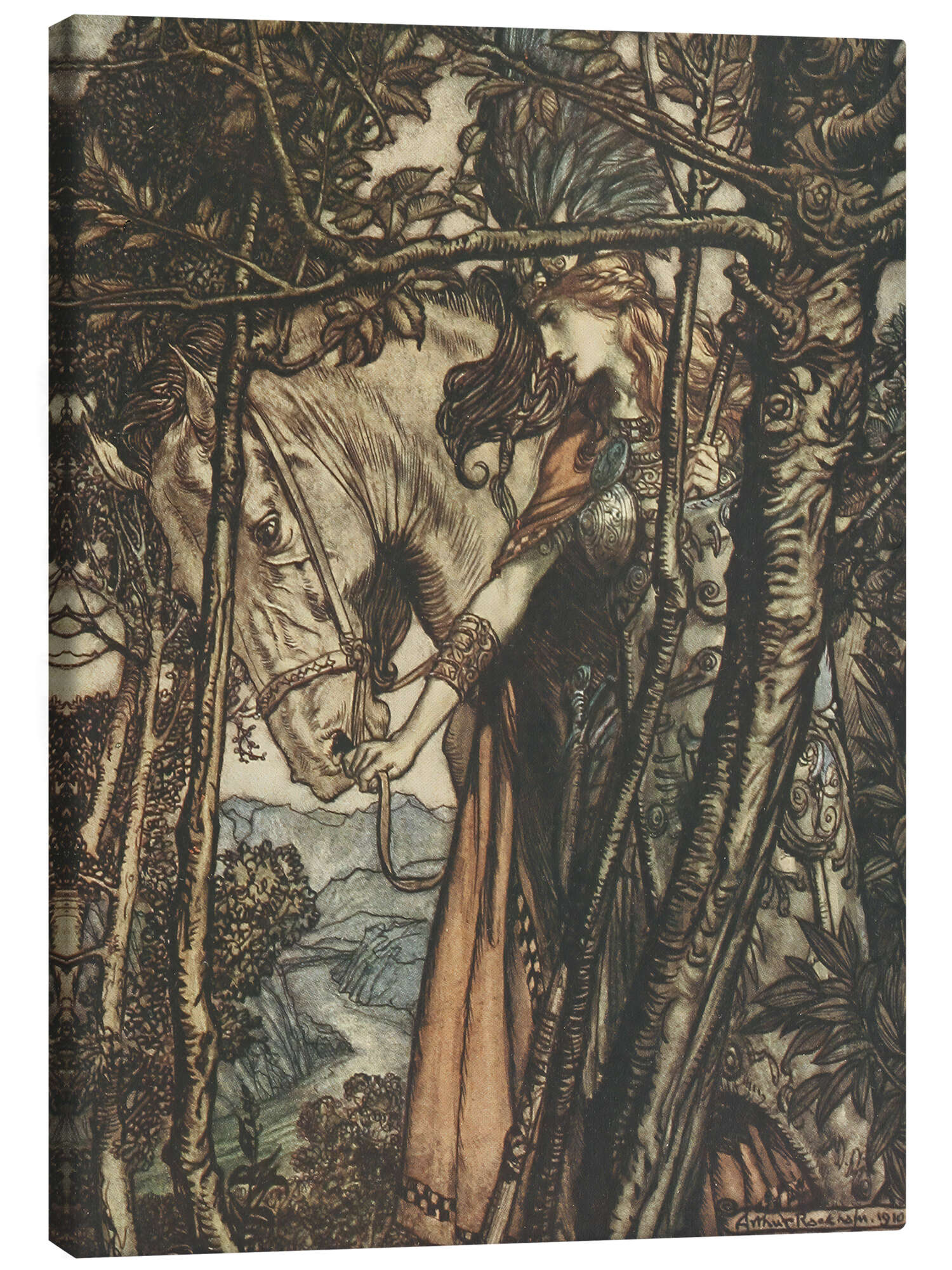 Leinwandbild Brunhilde führt ihr Pferd den Weg zur Höhle hinunter, 1910