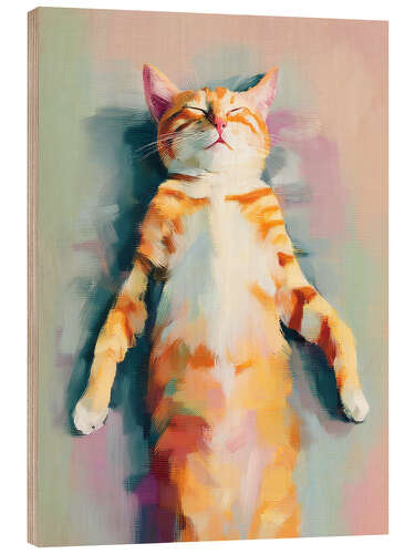 Holzbild Schlafendes orangefarbenes Kätzchen