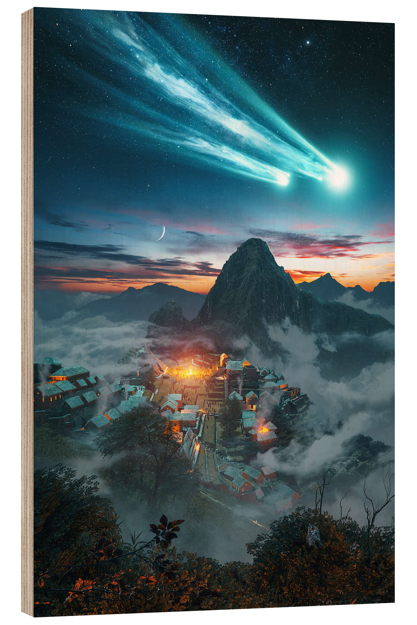 Holzbild Machu Picchu im Jahr 1500