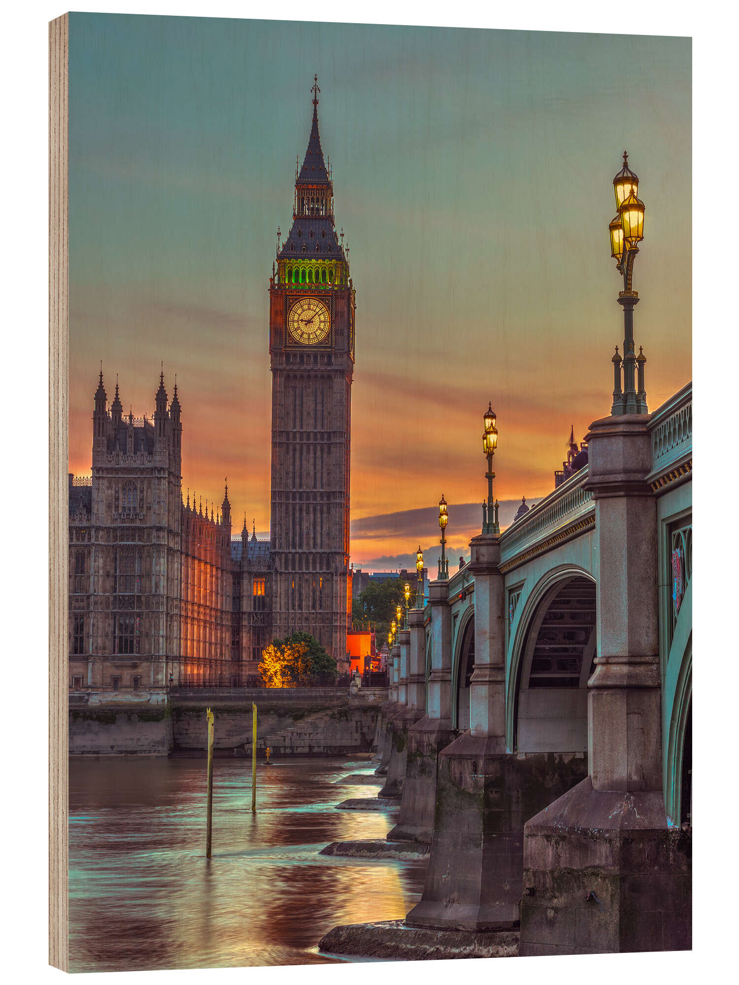 Holzbild Big Ben beim Sonnenuntergang