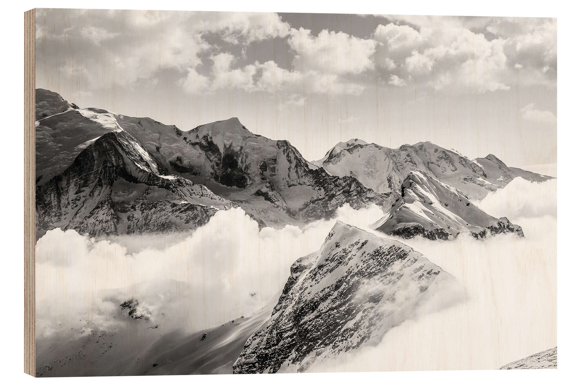 Posterlounge   Wandbilder   Schwarz-Weiß   Christian Müringer   Holzbild Bergwelt bei Flaire, Araches la Frasse, Frankreich