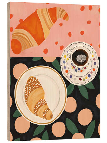 Posterlounge   Wandbilder   Rosé   Artsy Sesta   Holzbild Kaffee und Croissant