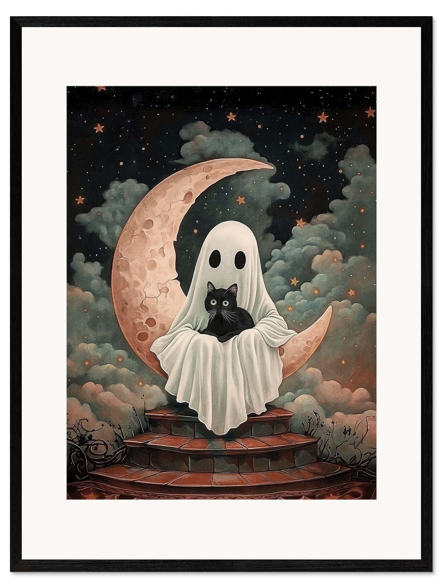 Posterlounge   Wandbilder   Illustration   Olga Telnova   Gerahmter Kunstdruck Geist und schwarze Katze