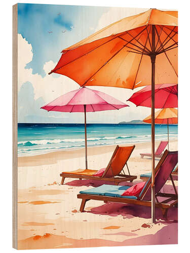 Posterlounge   Wandbilder   Malerei   Aquarell Malerei   Ohkimiko   Holzbild Entspannte Tage am Strand