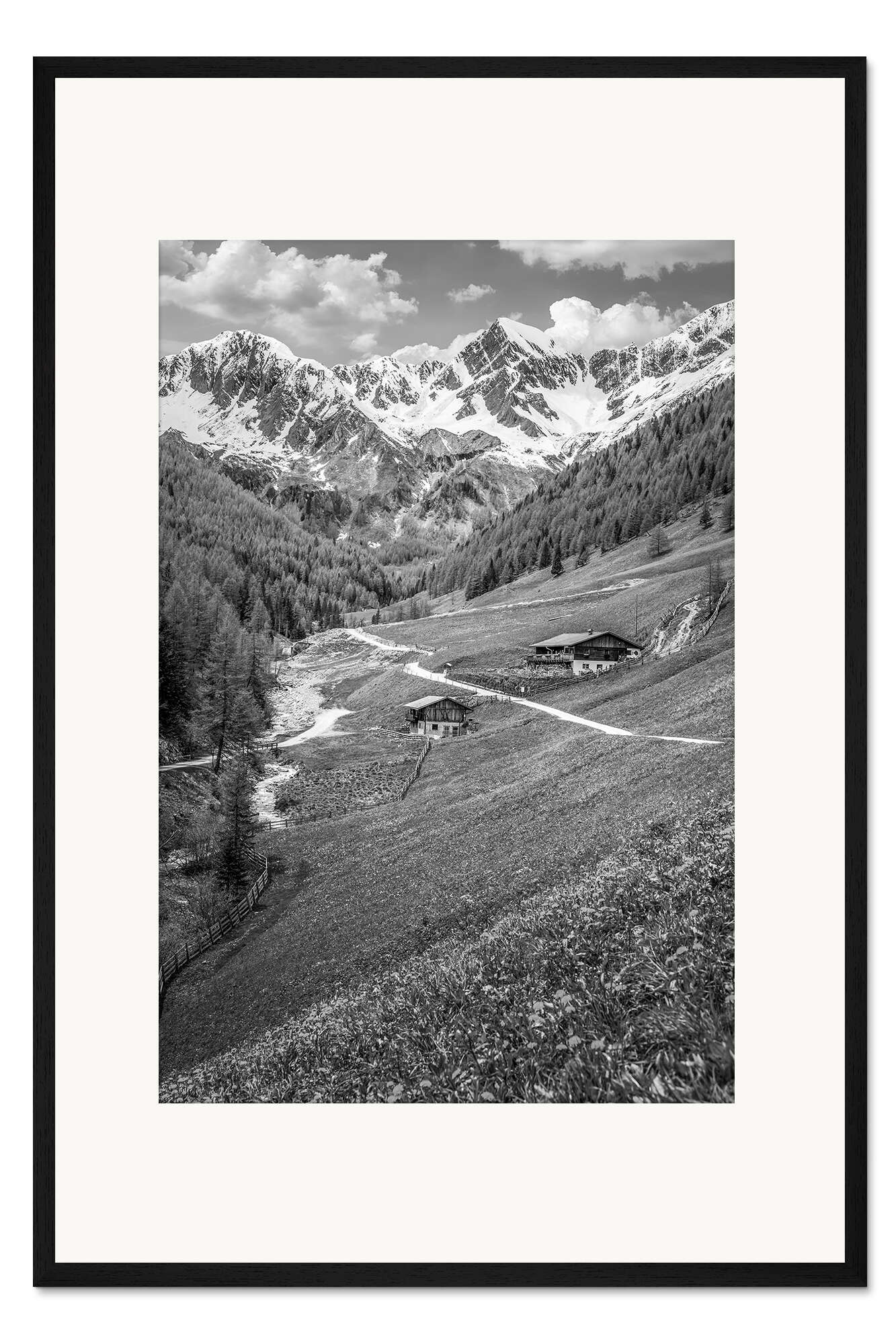 Posterlounge   Wandbilder   Schwarz-Weiß   Christian Müringer   Gerahmter Kunstdruck Bergmeister-Alm im Mühlwalder Tal bei Lappach, Südtirol